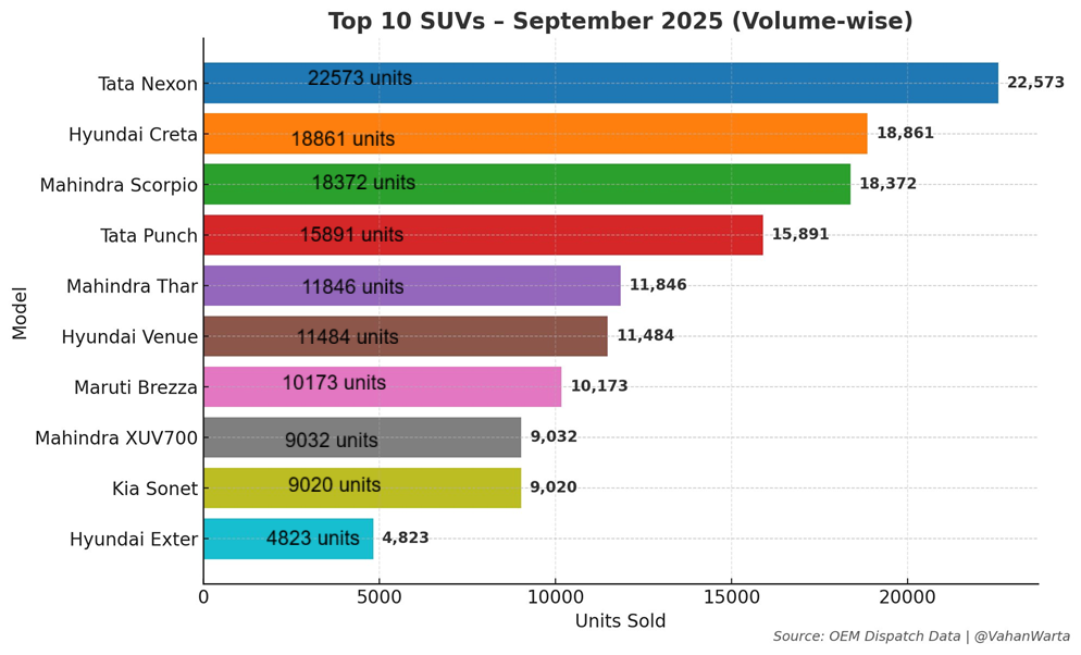 Tata Nexon  ने फिर दिखाया दम! सितम्बर 2025 में 22573 यूनिट बिकीं — स्टाइल, फीचर्स और भरोसे का तगड़ा कॉम्बिनेशन।